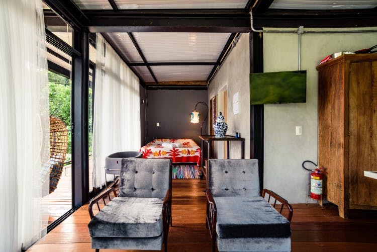Apartamento Deck, com projeto assinado por Alain Briatte, aonde o urbano e a natureza mantém uma conversa constante. Aço e Madeira, Vidro e Concreto. Num jogo de transparência que aproxima o frequentador horas da vista do mar, através de um grande deck de madeira, horas da vista da montanha que parece invadir a casa através de uma linda parede de vidro. Este é cenário que propomos férias únicas para você e sua família desfrutarem ilhabela.